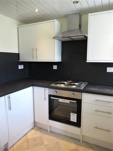 This ground floor property comprises a spacious, furnished lounge and a modern fitted kitchen with appliances including an electric oven and hob, washing machine, fridge, and freezer. There are two bright bedrooms, including a double with fitted mirrored wardrobes and a single bedroom, along with a contemporary bathroom featuring a white three-piece suite and an electric shower over the bath.