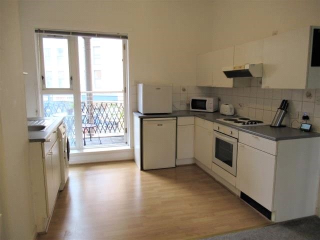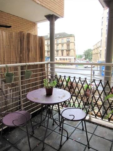 The accommodation comprises an open plan dining kitchen with white goods including electric oven and hob, fridge, freezer and washing machine, as well as a private balcony with seating area overlooking Argyle Street, bright lounge with two-seater sofa, master bedroom with excellent storage and internal en-suite shower room with electric shower, second double bedroom with private balcony overlooking Sauchiehall Street and on to Kelvingrove Art Gallery and Museum and separate internal shower room with electric shower.