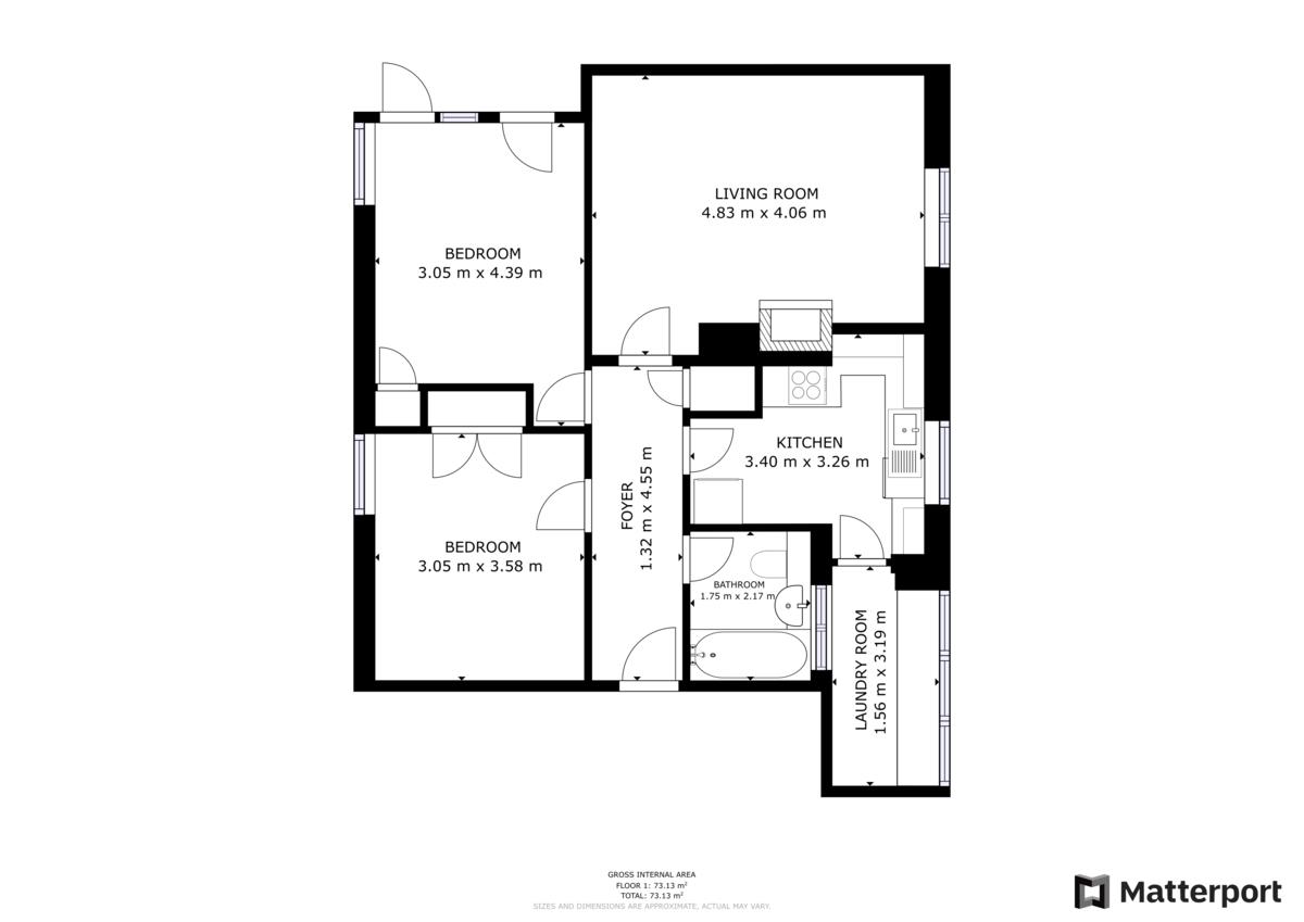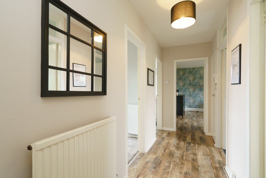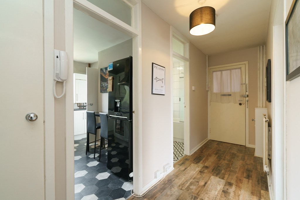 KITCHEN/BREAKFAST ROOM Modern recently upgraded kitchen with a range of appliances includes an electric hob and oven. Plenty of storage is provided by the white wood base and wall units and the counter tops are speckled black. Modern lino has recently been upgraded and there is a great number of appliances such as a large full-sized fridge/freezer, washing machine and many more. The kitchen benefits from a breakfast bar which can accommodate up to two people. Leading off the kitchen there is a fantastic size utility room which can also be used as a home office, benefitting from large double glazed windows and a countertop with under counter cabinets. Completed with neutral décor and vinyl flooring.