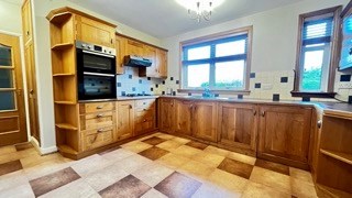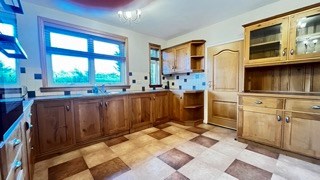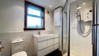 The accommodation comprises; welcoming entrance vestibule and hallway with press cupboard and under-stair storage, lounge with new gas fireplace and large windows overlooking the gardens and beyond, second reception room which could also be used as a dining room or office, naturally bright and warm conservatory overlooking the landscaped gardens, sizable fitted kitchen with pantry cupboard and base and wall-mounted units offering ample storage and worktop space, with appliances including electric double oven, gas cooker, dishwasher and fridge. Separate utility room with further units, a freezer, washing machine and overhead pulley. On the ground floor there are two double bedrooms and a generously proportioned dining room which could also be used as a bedroom - all three rooms of which host built-in storage. Finishing the downstairs is a contemporary shower room.