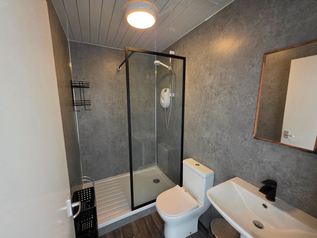 Open plan kitchen living space, finished to a high standard, and with appliances provided: 2 double bedrooms with built in storage, plus a further single bedroom: Lovely shower room, modern and spacious, including white suite and large shower enclosure.
