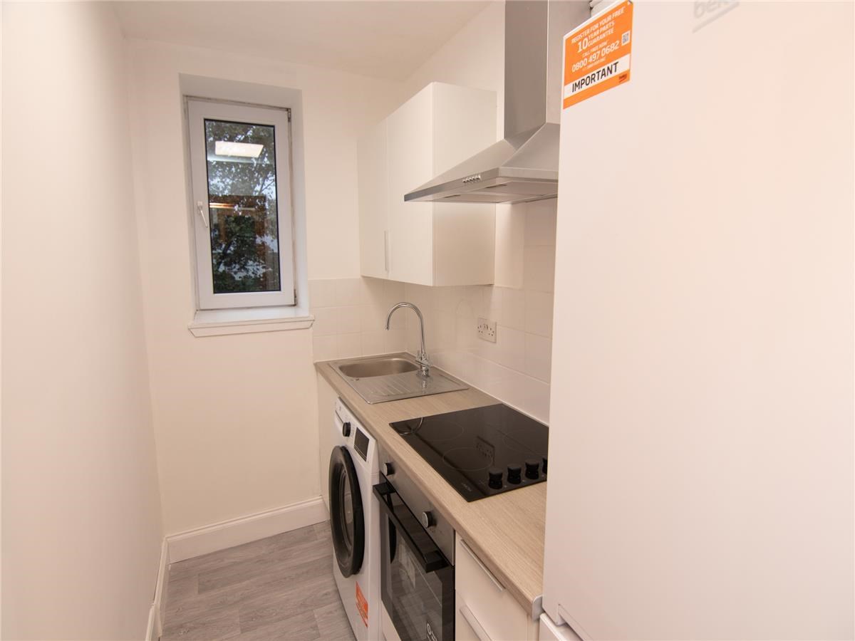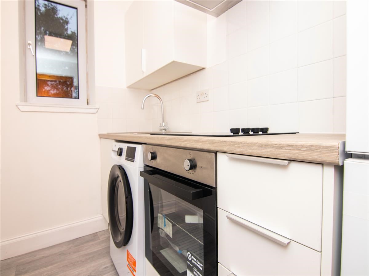 • Modern galley kitchen with gas hob, electric oven, washing machine, and fridge-freezer