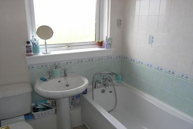 Upstairs the property's bathroom has a white ceramic three piece suite inclusive of a bath with shower fitment as well as a cosy heated towel rail. The master bedroom overlooks the green space at the front of the property and offers two built in wardrobes and neutral carpets. The second bedroom also has neutral carpets and overlooks the property gardens.