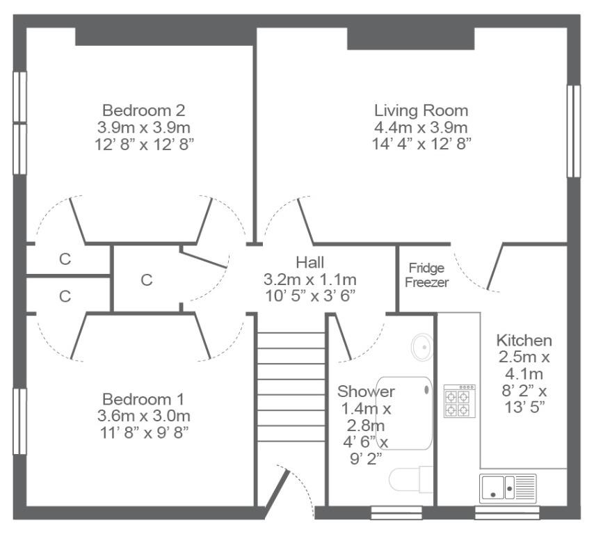 The property is situated on the upper floor within a traditional four in a block building and comprises internally of staircase to reach the upper floor leading to the landing which has a large storage cupboard and also gives access to all rooms. There are two good sized double bedrooms both with storage cupboards, a spacious and bright living room, shower room with white ceramics and a mains powered shower within the shower cubicle and finally the fitted kitchen with ample wall and floor fitted units which comes complete with appliances including fridge freezer, washing machine, ceramic hob and electric oven.