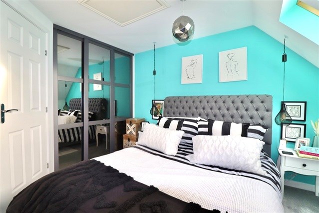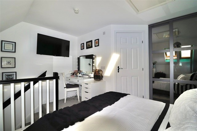 The second floor is dedicated to a luxurious master suite, offering an impressive double bedroom with fitted wardrobes and a stylish en-suite shower room, providing a peaceful, private retreat.