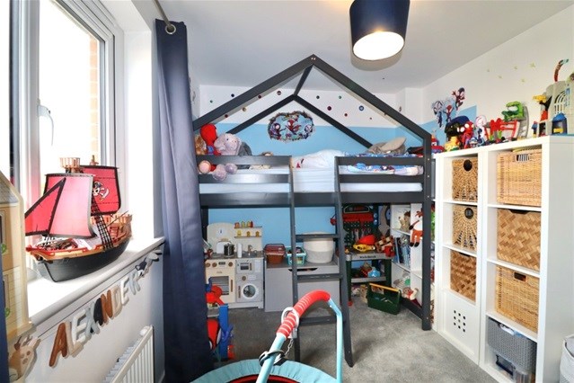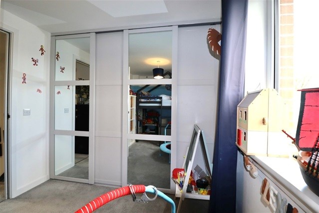 On the first floor, you'll find a spacious double bedroom with fitted wardrobes and a further single bedroom ideal as a nursery or home office. A contemporary three-piece family bathroom serves this floor.