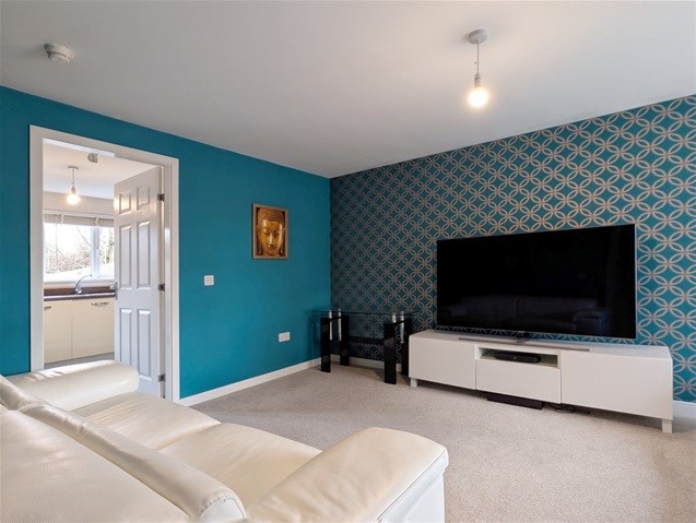 The welcoming entrance hallway with convenient ground level WC. The spacious lounge, is finished in contemporary neutral tones with quality flooring and tasteful décor. The generous living space provides the perfect setting for relaxing evenings, with natural light flowing beautifully through the home thanks to its desirable end-terrace position.