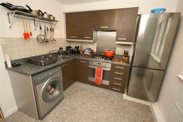 The property is accessed via a welcoming hallway, which includes two useful storage cupboards. The spacious lounge is bright and neutrally decorated, providing a comfortable living space. The modern fitted kitchen offers ample wall and base units for storage and comes fully equipped with white goods, including a gas hob and electric oven.