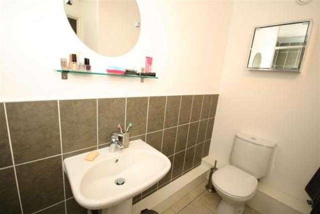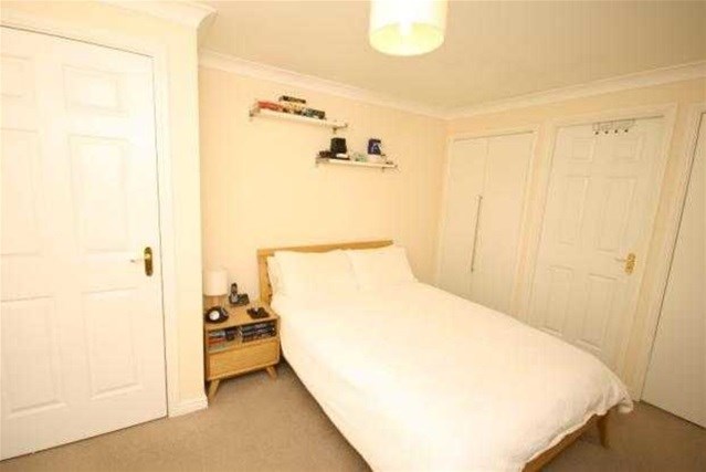 The family bathroom features a contemporary white three-piece suite with shower. Both double bedrooms include built-in wardrobes, with the master bedroom further benefiting from an en-suite.