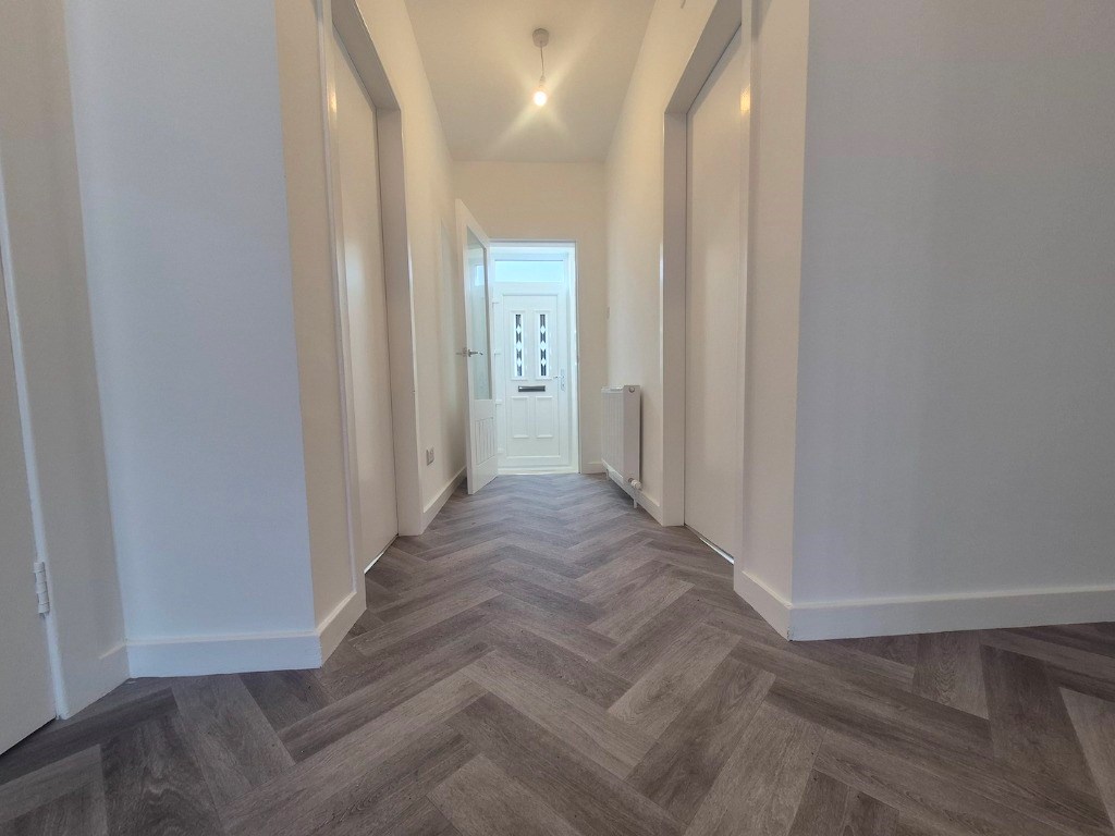 The property comprises of a main door entry onto a freshly decorated and spacious hall way with laminate flooring and two large storage cupboards.