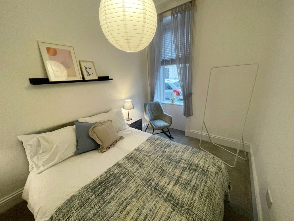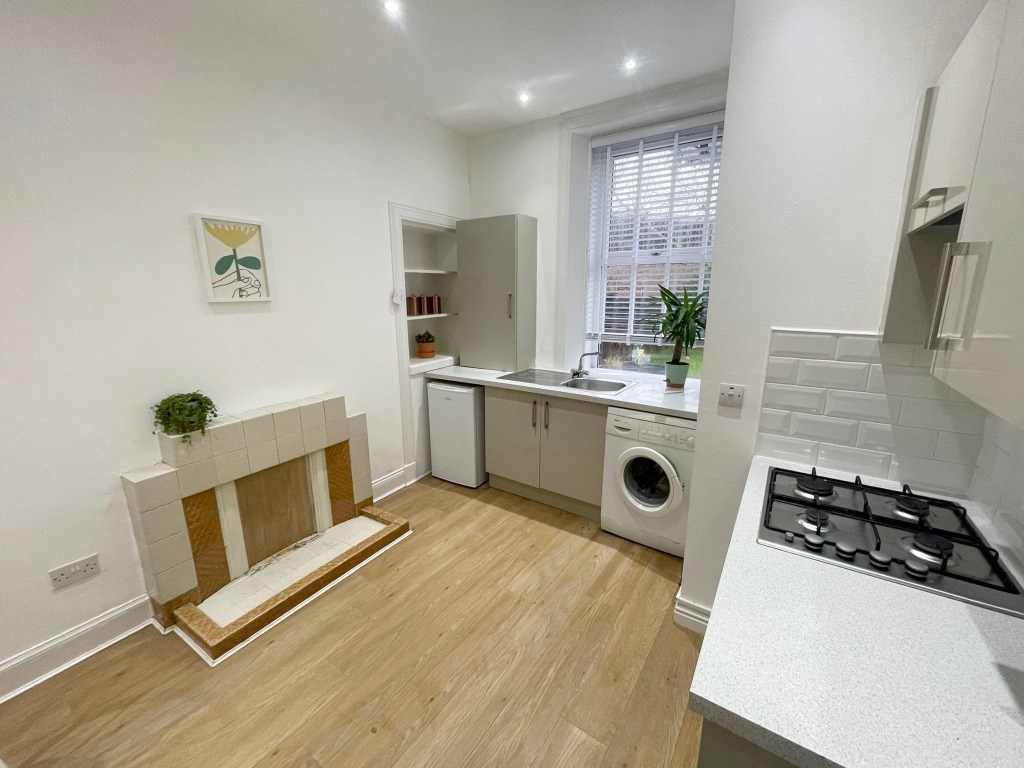 This lovely ground floor flat can be a fantastic home to a single person or couple. It has a double bedroom with wardrobe and chest of drawers, bright and spacious forward facing living room with feature fireplace, open plan kitchen/ dining room with another feature fireplace, complete with white goods. The shower room is brightly decorated with cubicle, basin and toilet.