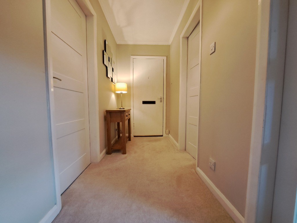 A modern entrance hall with a fitted carpet.