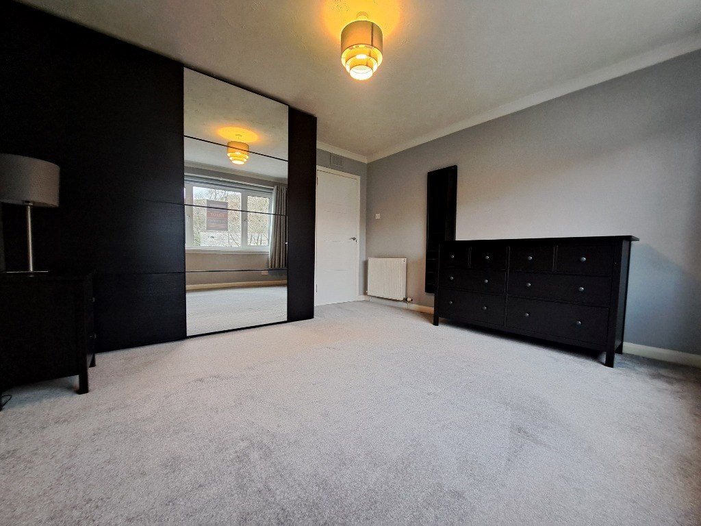 A good-sized double bedroom with a fitted carpet and modern furniture.