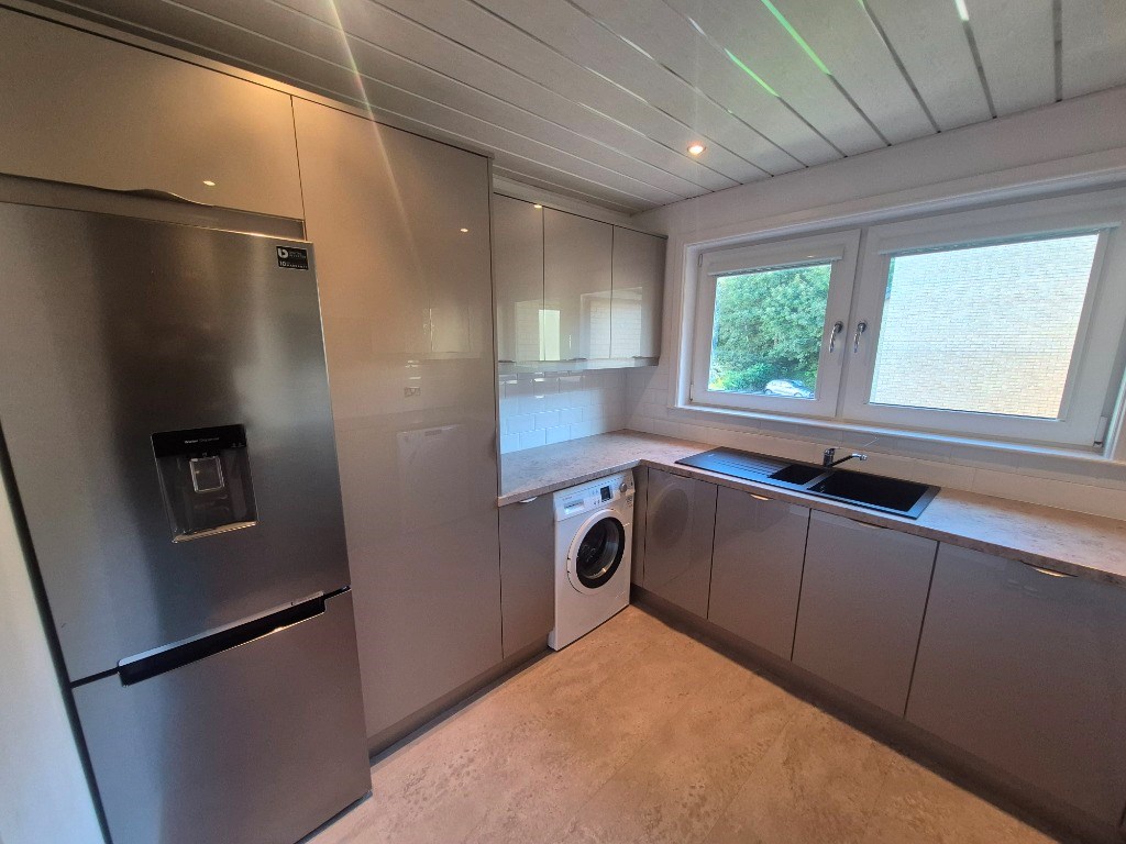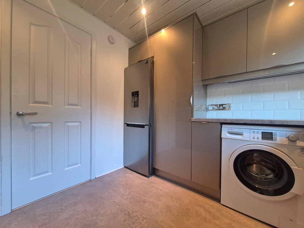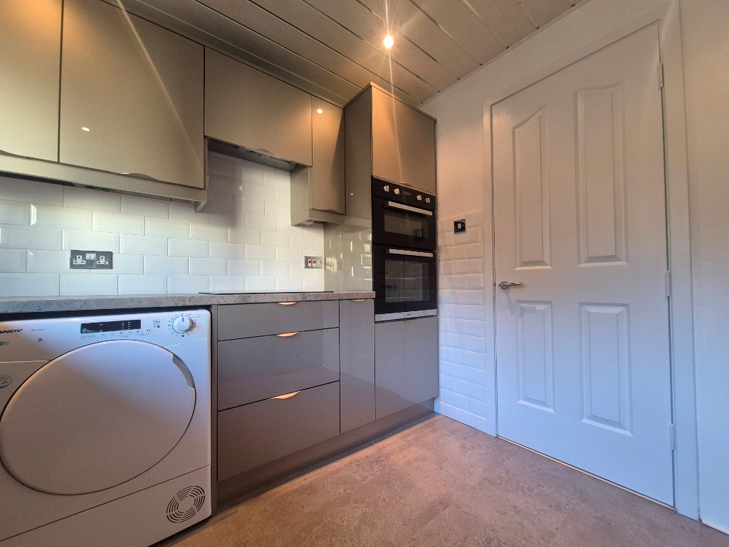 Modern fitted kitchen with appliances which include a fridge freezer, integrated oven/grill , induction hob ,washing machine and tumble dryer.