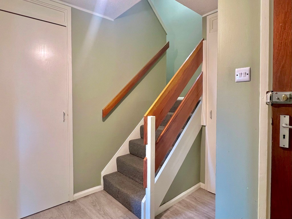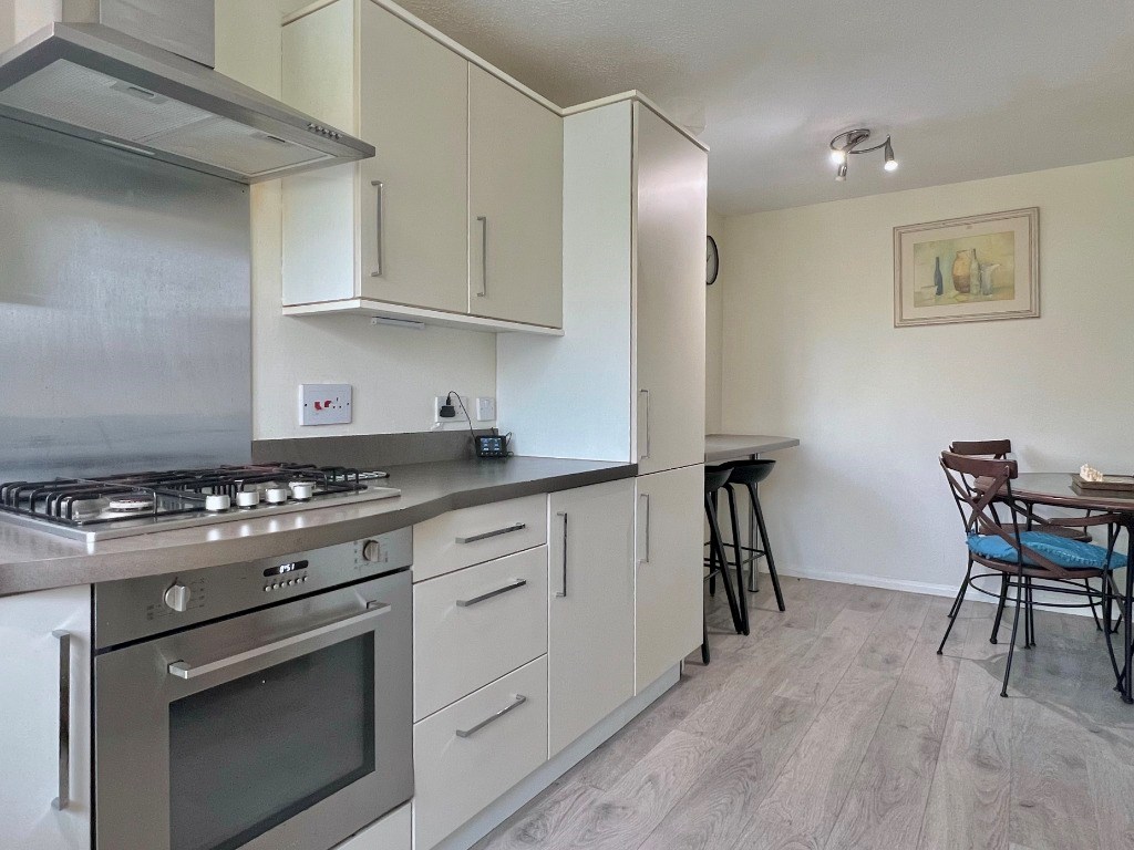 The property is entered via communal stair and opens up to the spacious, well equipped dining kitchen with breakfast bar. On the lower level, there is also good storage and small shower room and WC. Stairs lead up to the sunny lounge which opens up to the south facing balcony. There are 2 double bedrooms, modern bathroom with shower and ample storage on this level too.