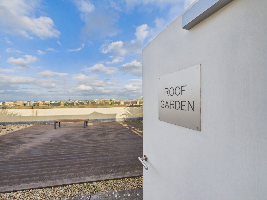 Leaving the flat, the communal areas are well maintained: there is a garden space and, to enjoy Edinburgh's sunny days, there is a communal rooftop where you can relax in the sunroom or choose between the two roof terraces with views across the rooftops of Edinburgh towards Easter Road Stadium, the Firth of Forth and to Calton Hill.