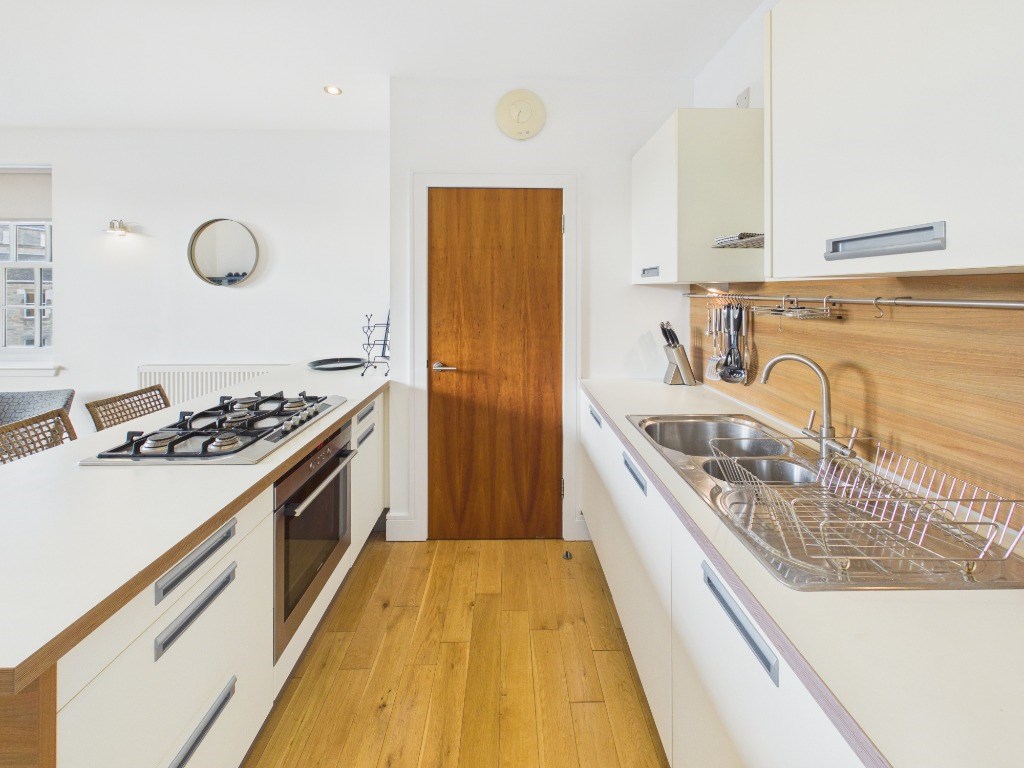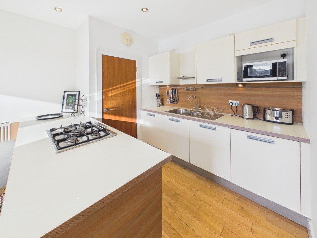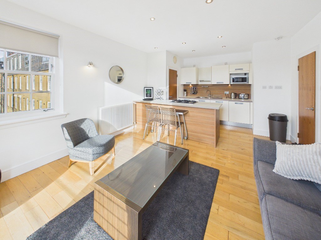 This property comprises of: welcoming entrance hallway with 2 good sized storage cupboards; a double bedroom featuring a generous built-in wardrobe and king-size bed; an open-plan kitchen-living and dining space which is bright, well proportioned and benefits from a Juliet balcony with views over towards Calton Hill; The kitchen itself is modern and stylish featuring a central island and breakfast bar and all modern appliances including dishwasher, there is a utility cupboard off the kitchen which houses the gas boiler and washing machine. Off the hallway is a spacious bathroom with an over-bath shower.