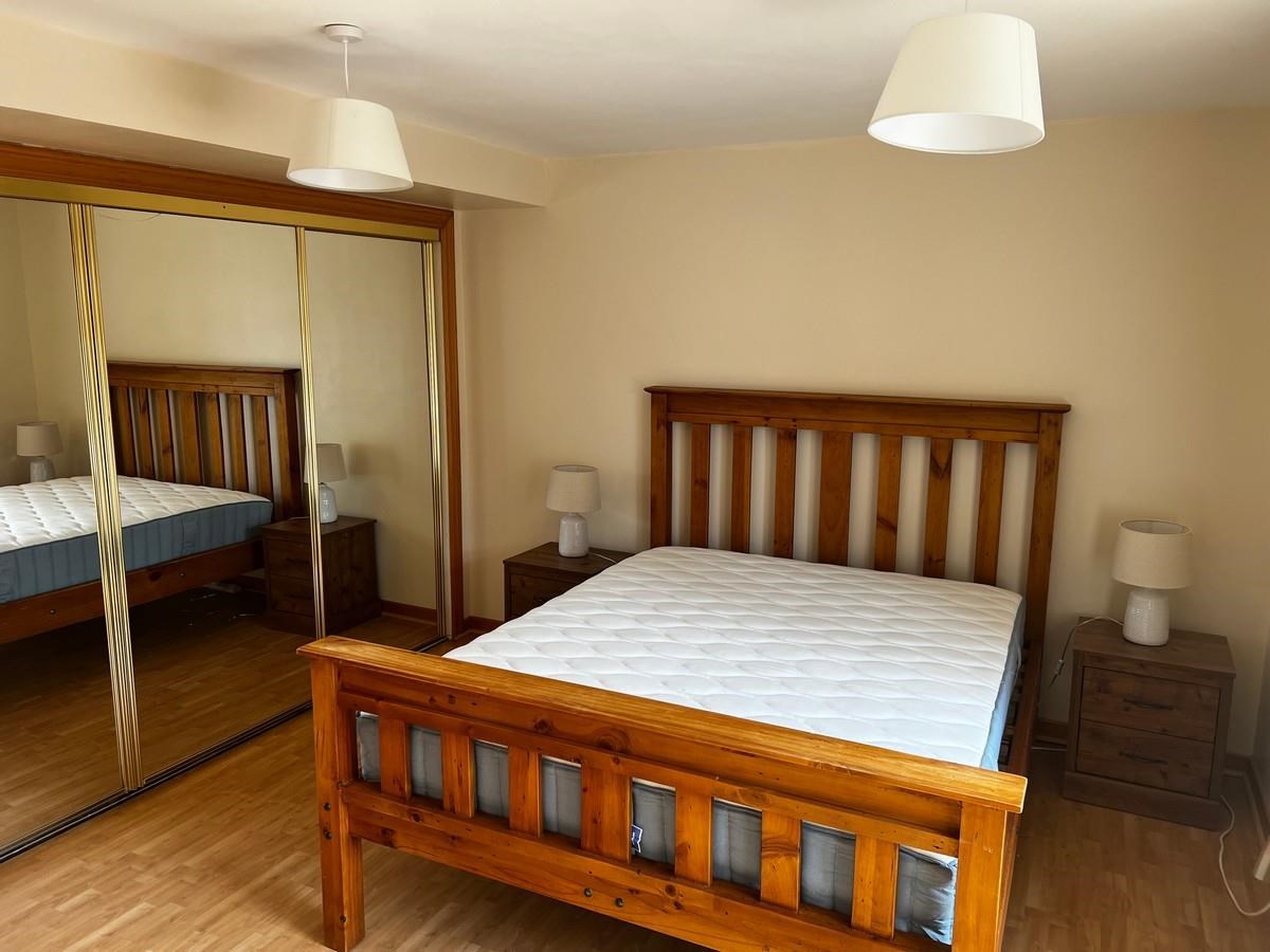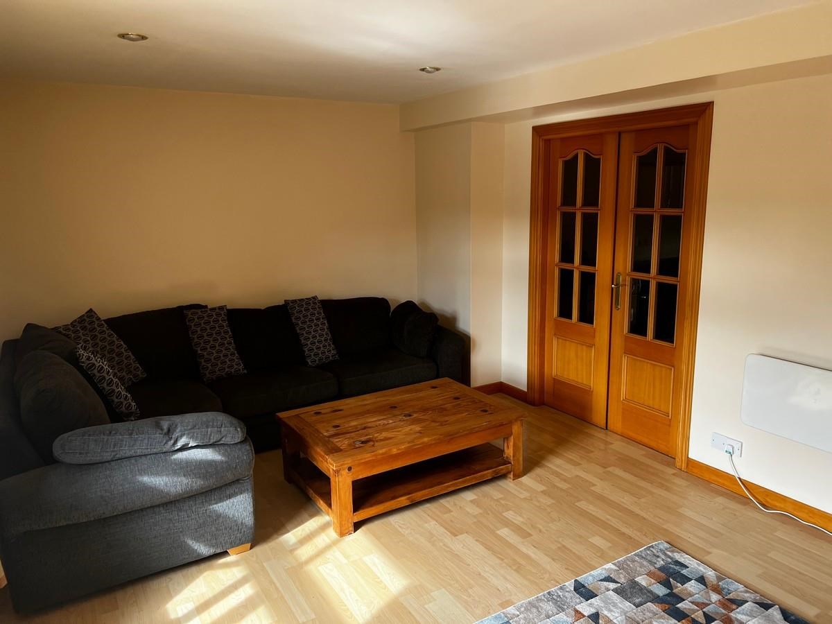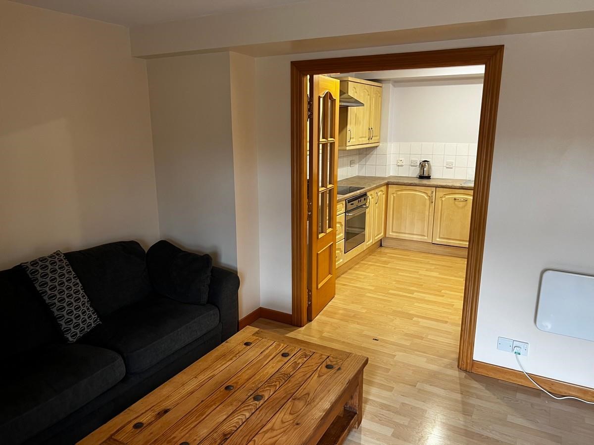 The flat door opens on to a spacious central hallway. The sitting room is bright and opens, through two glazed doors, to a well-equipped kitchen/diner. Adjacent to the hallway is a spacious double bedroom featuring substantial built-in wardrobes. The bathroom has been modernised with a shower over bath set-up. There are two good-sized cupboards off the hallway for storage and laundry.