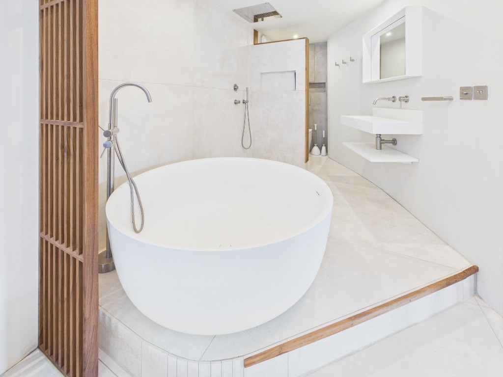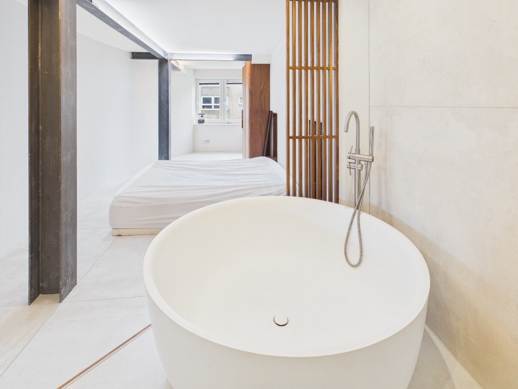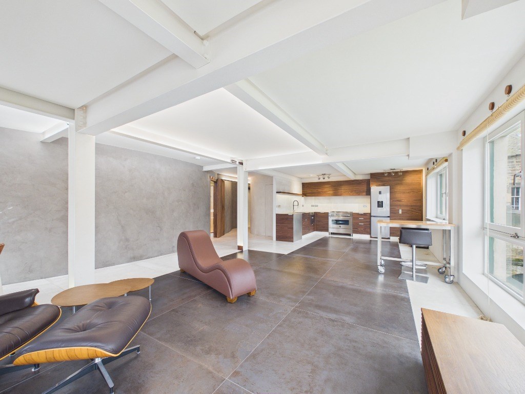 The flat features an open?plan kitchen, dining and living area, enhanced by a large sliding door that opens onto a private balcony with views over South Leith Parish Church; The newly installed kitchen features fully integrated appliances including washer-dryer, dishwasher, fridge-freezer and large gas stove with oven. The standout bedroom offers a luxurious open?concept layout, complete with a California King bed, a striking freestanding Lusso Stone bathtub, and a discreet ceiling?mounted rainfall shower within the open ensuite. behind the shower's partition wall is a semi private WC. Additionally, the property features a guest WC with built in storage.