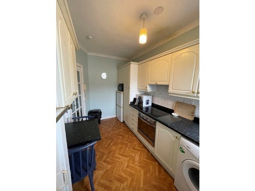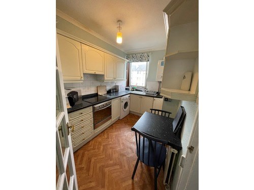 Bright and well-presented, 1st floor fully furnished flat in the popular area of Leith offers a spacious and comfortable living space, perfect for professionals, couples or students. The flat has been recently decorated throughout with a fully renovated bathroom with a new shower and under sink storage. The flat comprises a large, welcoming lounge with a feature gas fireplace and bay window and ample space for a two-piece suite and dining table. The fitted kitchen has ample cupboard space and a breakfast nook with chairs. The kitchen is well supplied including fridge, washing machine, microwave and new appliances including an air fryer. The large bedroom offers ample storage with fitted wardrobes. There is a secure door entry system and a large, shared garden to the rear of the property. The property is fully furnished and has gas central heating and double glazing throughout.