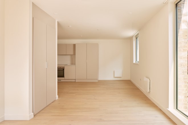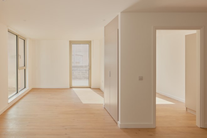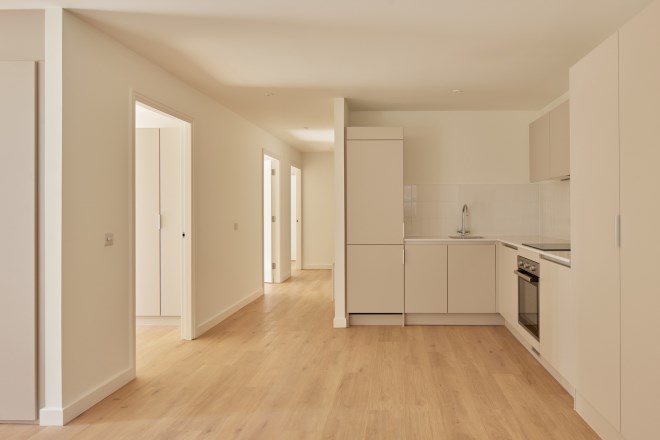 Our 3-bedroom apartments feature an open-plan layout that seamlessly integrates the kitchen, living, and dining areas. The fully integrated kitchen includes a hob, oven, dishwasher, and fridge freezer. Our bedrooms are designed with spacious layouts and floor-to-ceiling windows, benefitting from natural light. The main bathroom includes a bath with a shower overhead and mirrored storage cabinets. You will also appreciate the main bedroom's private ensuite with an overhead shower, while each apartment also comes equipped with extra storage and a convenient washer-dryer to make everyday life a little easier.
