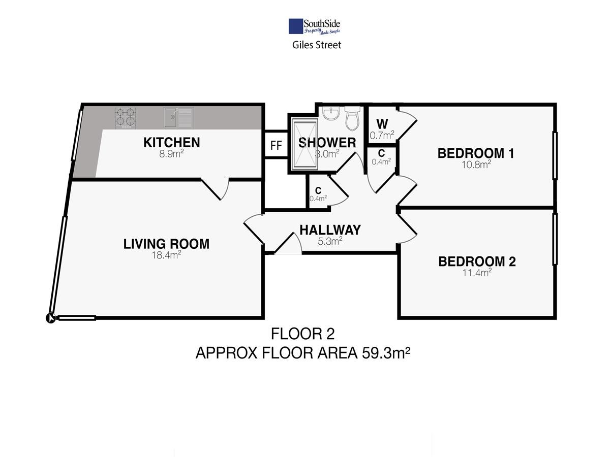 ~Total floor area = 68m²