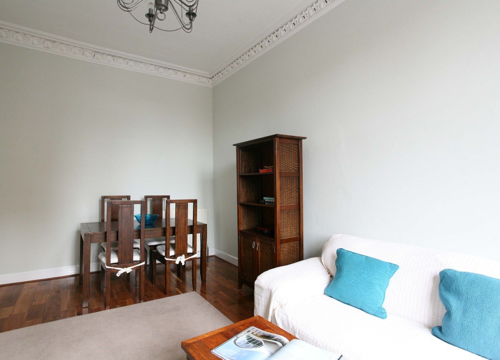 Accommodation: Bright and welcoming first floor two double bedroom flat off Leith Walk. This flat has a good sized living room with dining table and walnut floor, separate kitchen which is going to be updated before the new let, full internal bathroom and the two bedrooms both with hardwood floors facing on to a quiet garden.