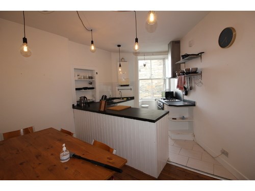 Spacious Third floor flat comprising of one large double bedroom and one box room. Entrance hall with storage cupboard , large comfortable living room with some traditional features and new PVC windows. Separate fully modernised open plan kitchen / dining room with fitted appliances including a fridge , washing machine and microwave. Single electric oven and gas hob. Adjoining dining area has a large dining table and five chairs. Partially tiled family bathroom with white three piece suite and shower over the bath. Early viewing is recommended.