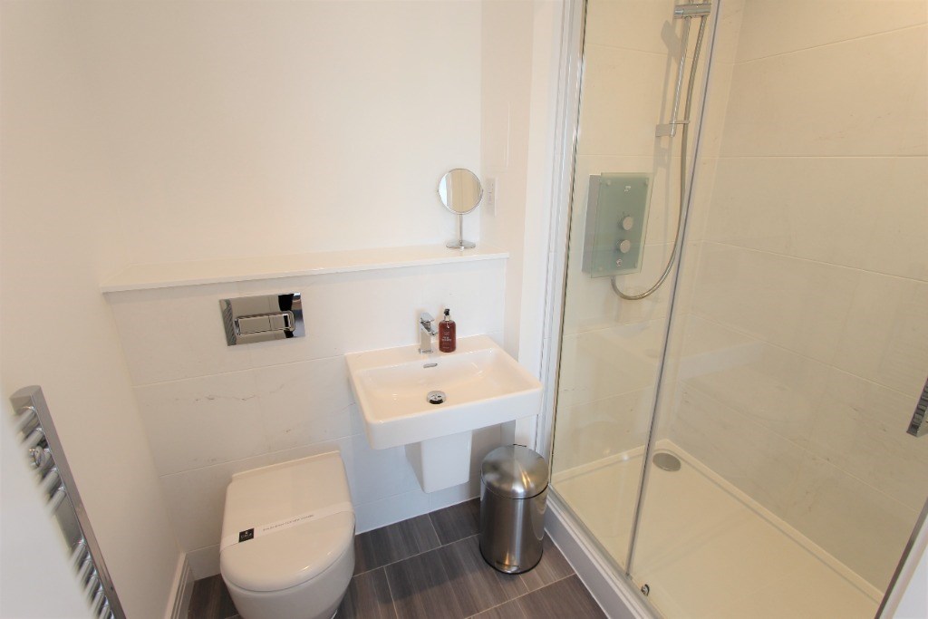 This property comprises of; open plan living, dining & kitchen area. The living and dining area benefits from soft pendant lighting, hardwood floors and a private balcony overlooking the development. The white designer kitchen comes with integrated Bosch appliances including fridge, freezer, dishwasher, oven & induction hob as well as plenty of storage space. To the front of the property overlooking the water are two spacious double bedrooms, both with neutral, soft grey carpets and built-in, bi-folding wardrobes. The master bedroom benefits from a contemporary en-suite bathroom with walk-in shower. Off the hall is the family bathroom with large bath and shower over bath. Also off the hall is a well sized cupboard cloak room and "utility" cupboard housing a Bosch washer dryer and silent vent system.
