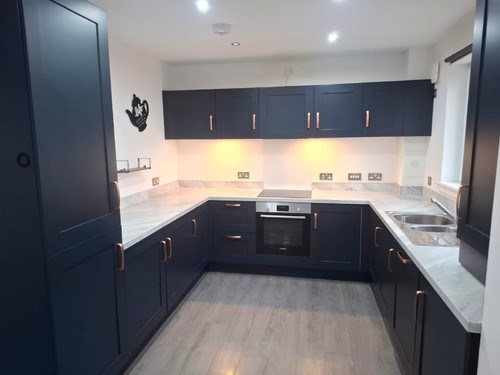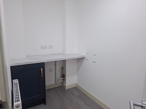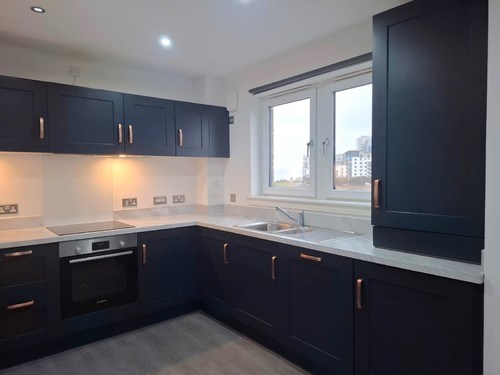Inside, the apartment has been beautifully designed for modern living. The spacious open-plan lounge and kitchen area spans the length of the property and is flooded with natural light, featuring a Juliet balcony that enhances the wonderful sense of space and those exceptional views. The kitchen is stylishly fitted with ample storage and workspace, while the living area provides plenty of room for both relaxing and dining. A separate utility room offers additional convenience and storage space.