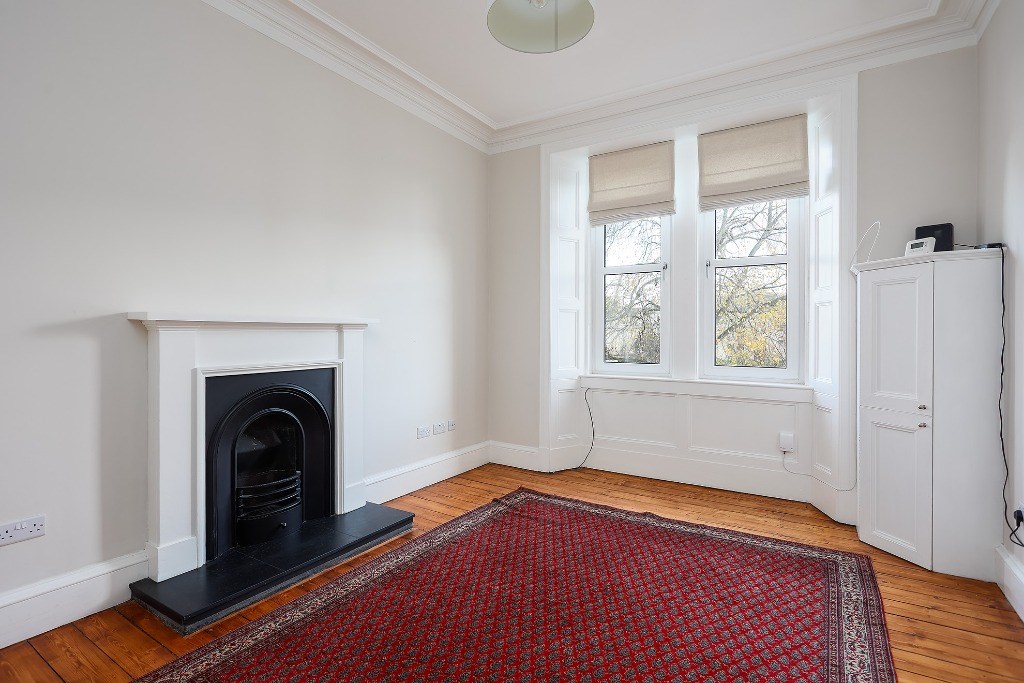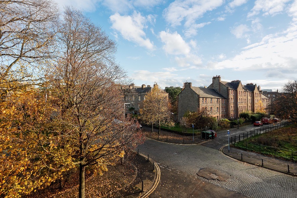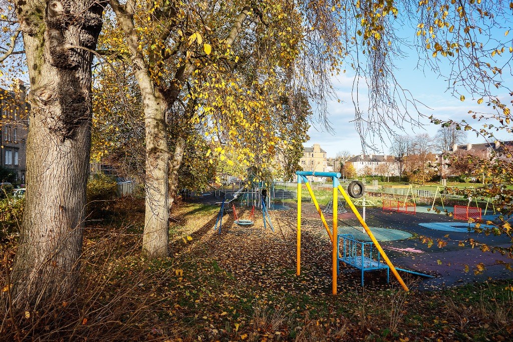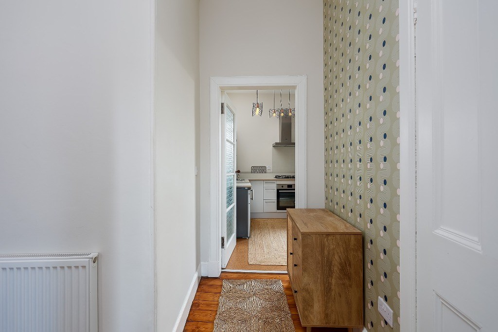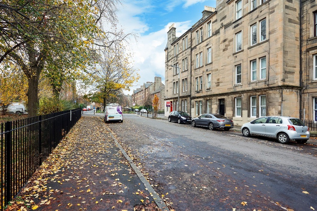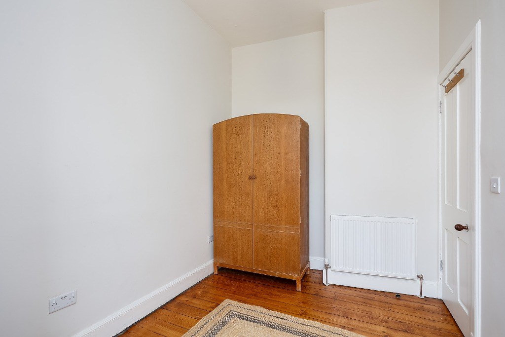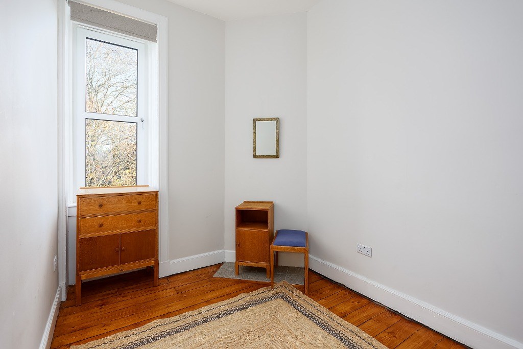 The flat comes partly furnished and features a spacious kitchen with light grey units and toning worktops, a gas hob, electric oven, fridge, freezer (freezer in hall cupboard) and washing machine. A window seat adds a cosy touch and invites natural light into the space, a good-sized double bedroom, with the flexibility to create a second bedroom, living room, or home office to suit your needs. The stylish bathroom includes an electric shower over the bath and a heated towel radiator. Additional benefits include gas central heating, double glazing and access to a shared garden. Situated directly opposite Dalmeny Street Park, it benefits from pleasant views and easy access to green space while remaining close to shops, transport links, and all central amenities.