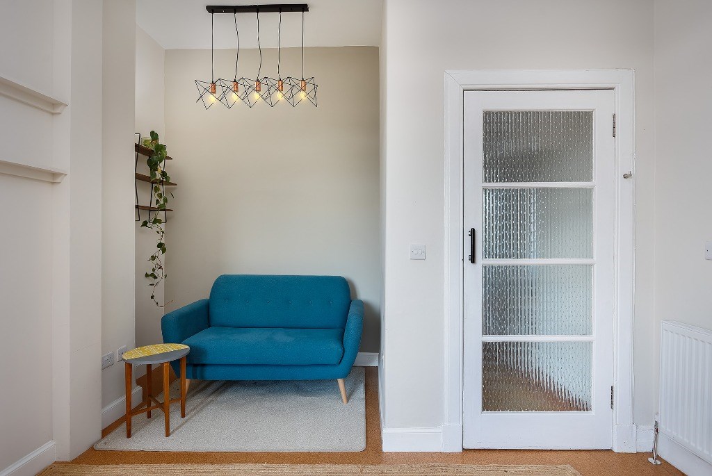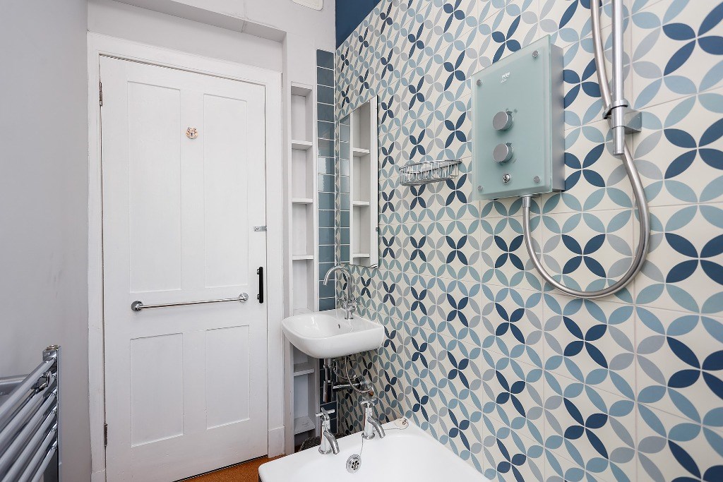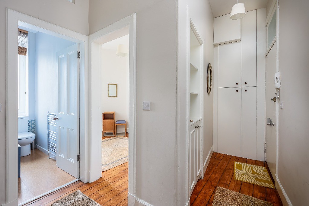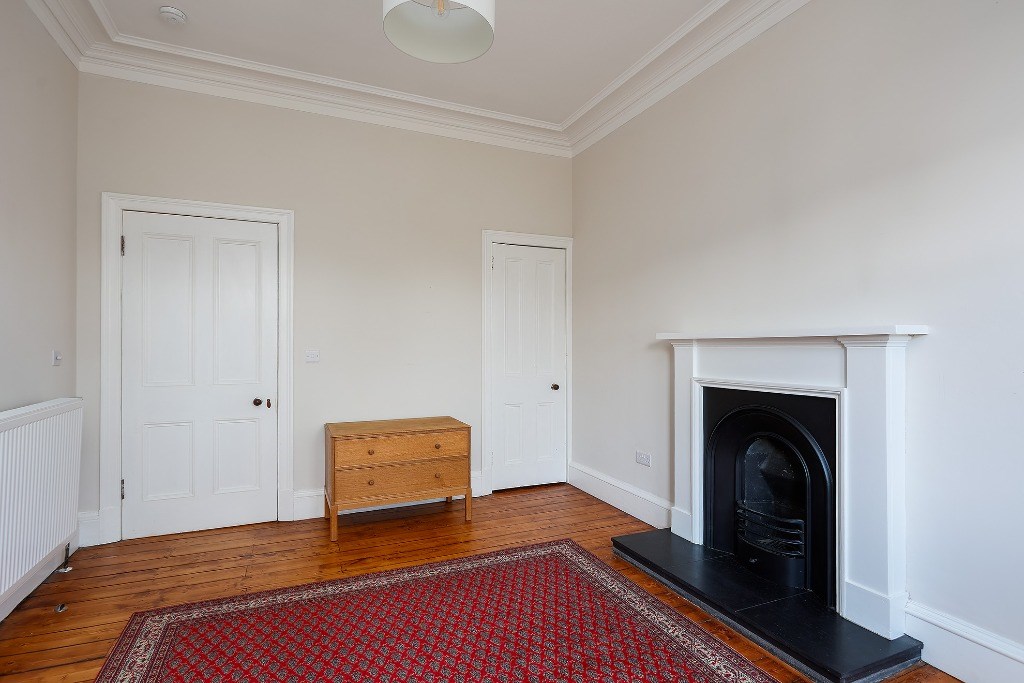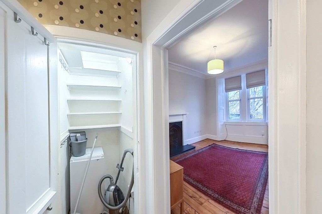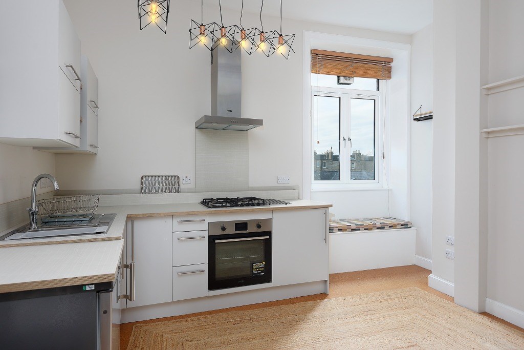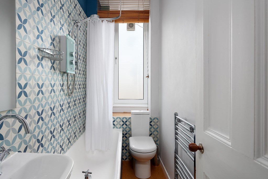 The flat comes partly furnished and features a spacious kitchen with light grey units and toning worktops, a gas hob, electric oven, fridge, freezer (freezer in hall cupboard) and washing machine. A window seat adds a cosy touch and invites natural light into the space, a good-sized double bedroom, with the flexibility to create a second bedroom, living room, or home office to suit your needs. The stylish bathroom includes an electric shower over the bath and a heated towel radiator. Additional benefits include gas central heating, double glazing and access to a shared garden. Situated directly opposite Dalmeny Street Park, it benefits from pleasant views and easy access to green space while remaining close to shops, transport links, and all central amenities.