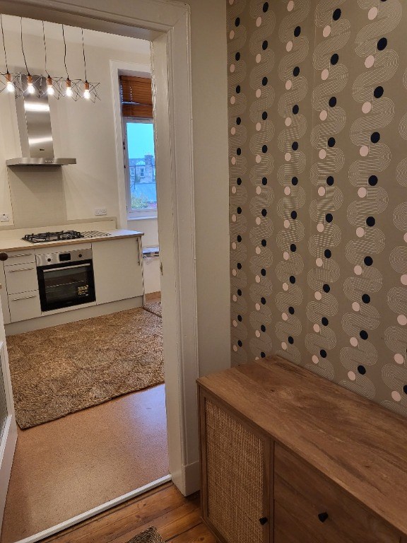 Recently refurbished flat (including boiler and appliances) in Leith (EH6) 10 minutes from St James Centre and 5 minutes from nearest tram stop and Lidl Easter Road. Partially furnished. Permit parking. One bedroom but with possibility for second bedroom given large kitchen/living space.