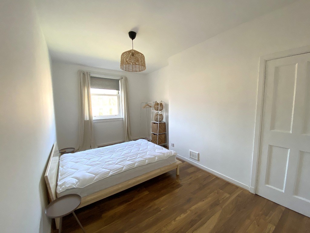 Both bedrooms are of a similar size and have double beds in them and are painted a neutral white. The bedroom at the front or the property has wooden flooring, double bed with bedside tables either side, storage rail and chest of drawers. The room has a large window with a black out blind and curtains. The bedroom at the back of the property is slightly bigger, it has a double bed with two bedside tables, storage rail and an Edinburgh Press.