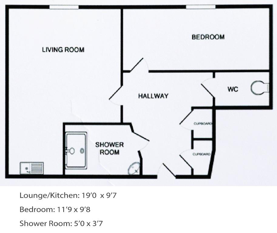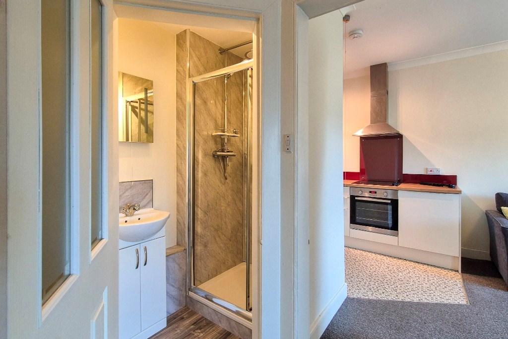 Accommodation: This furnished, second floor, 1 bed flat comprises an open plan kitchen/living room, a double bedroom, separate wc and shower room and 2 small hall cupboards.