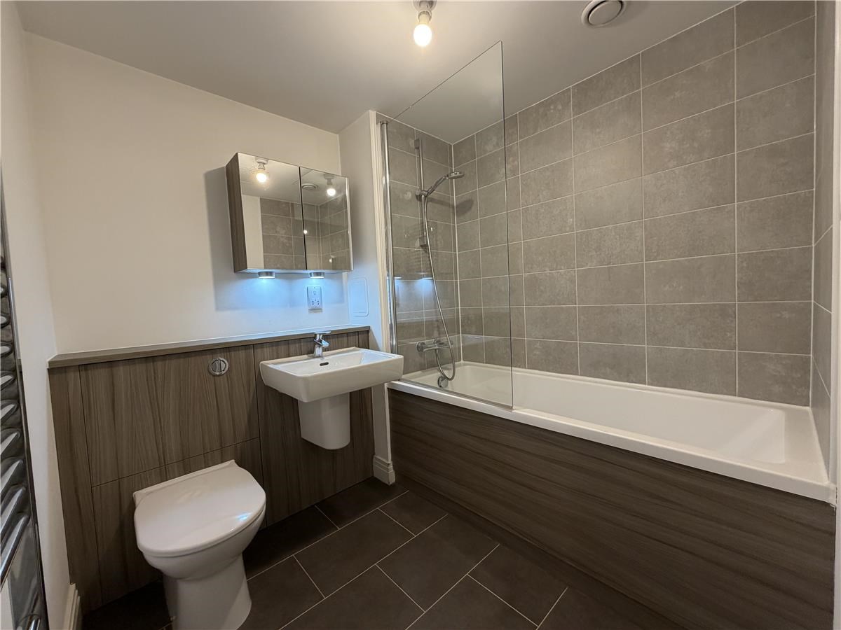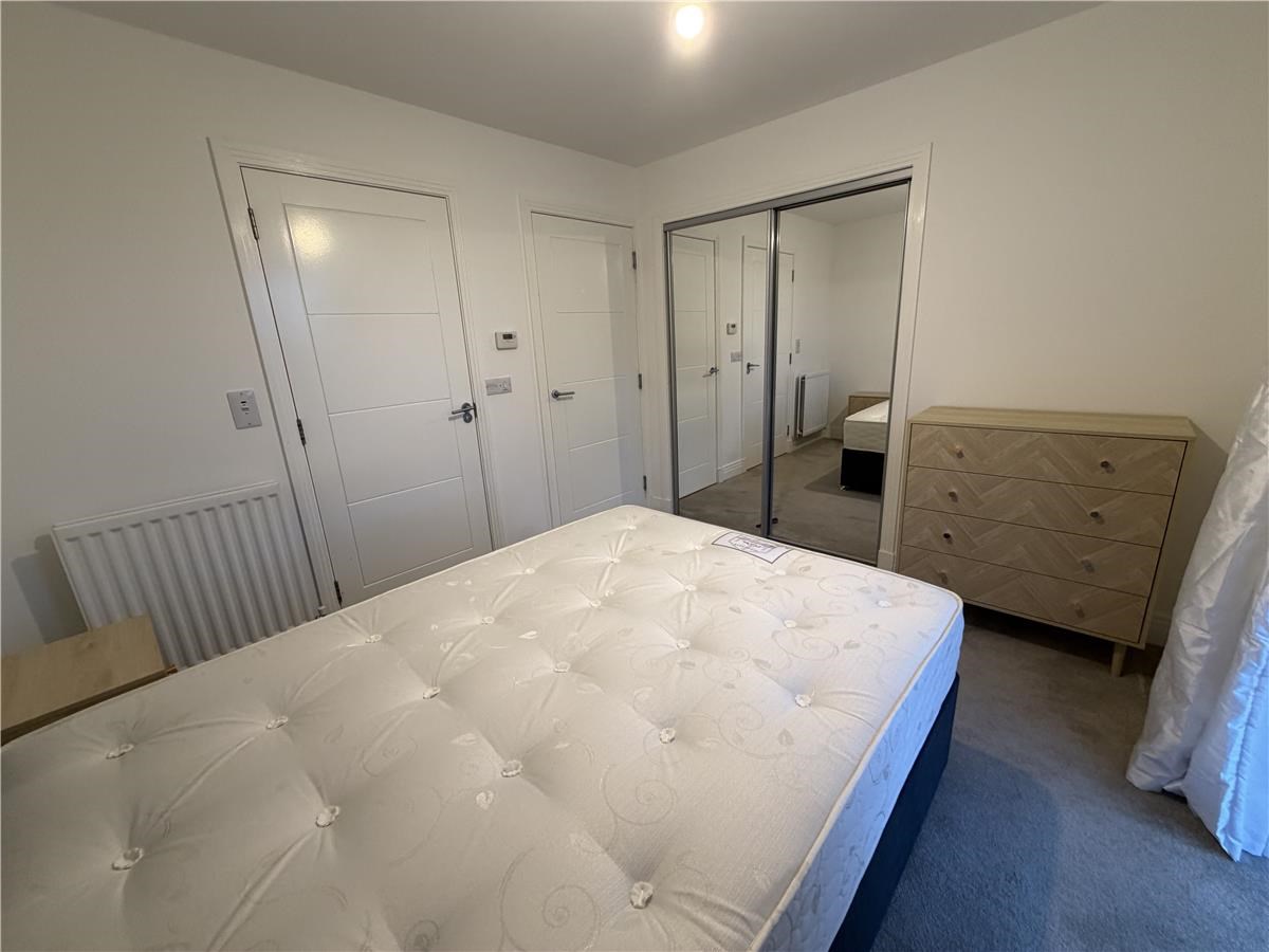 The principal bedroom benefits from built-in wardrobes and a sleek en-suite shower room, while the second double bedroom also features built-in wardrobes. A modern main bathroom with shower over the bath completes the accommodation.