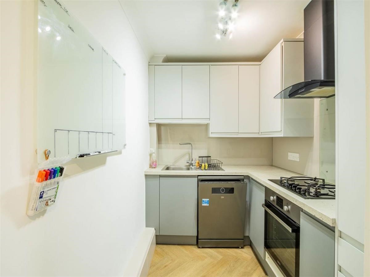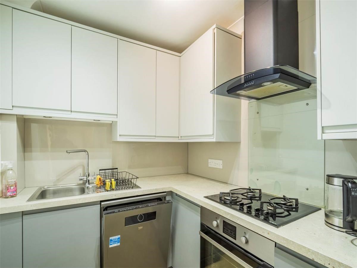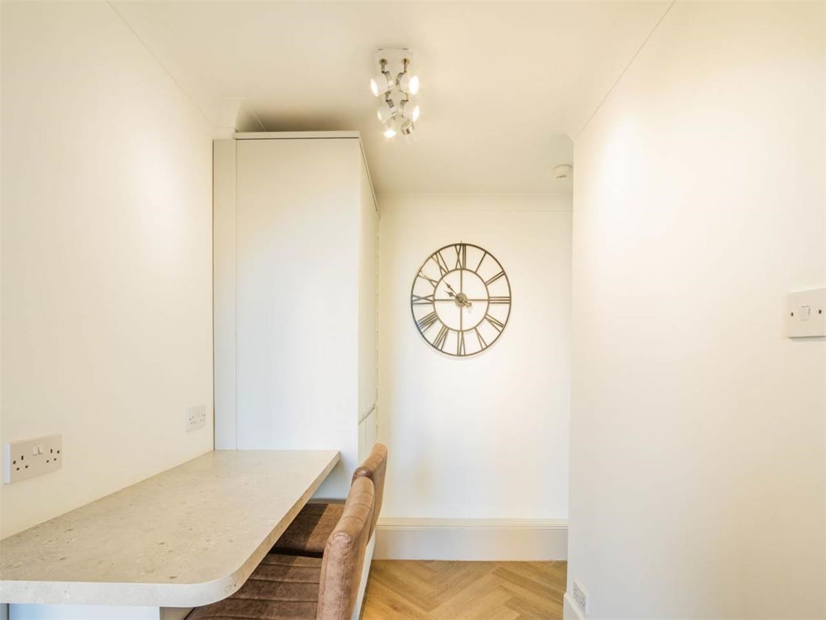 The bright and spacious flat is presented immaculately and the accommodation comprises: entrance hallway, a bright living room, kitchen with integrated appliances and breakfast bar. Main bedroom with large mirrored built-in wardrobe, second double bedroom off the living room and a lovely bathroom with shower over bath tub.