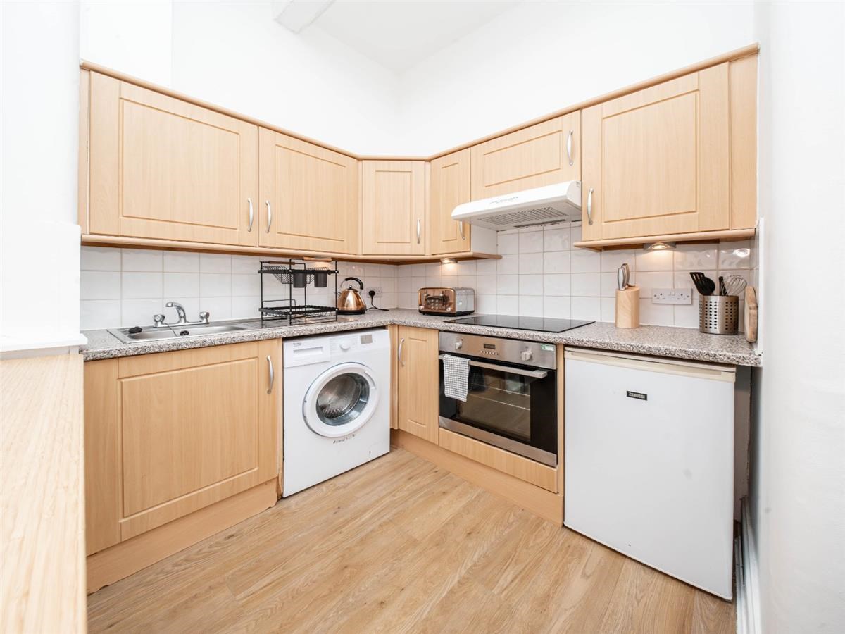 Accessed via a communal stairwell with secure entry phone system, the accommodation comprises: entrance hallway with two storage cupboards; open plan living room/kitchen, the kitchen has wall and base units, tiled splashback an integrated appliances (namely oven, hob and cooker hood); spacious double bedroom with large wardrobe; and a bathroom with three-piece white suite with shower over the bath which completes the accommodation.
