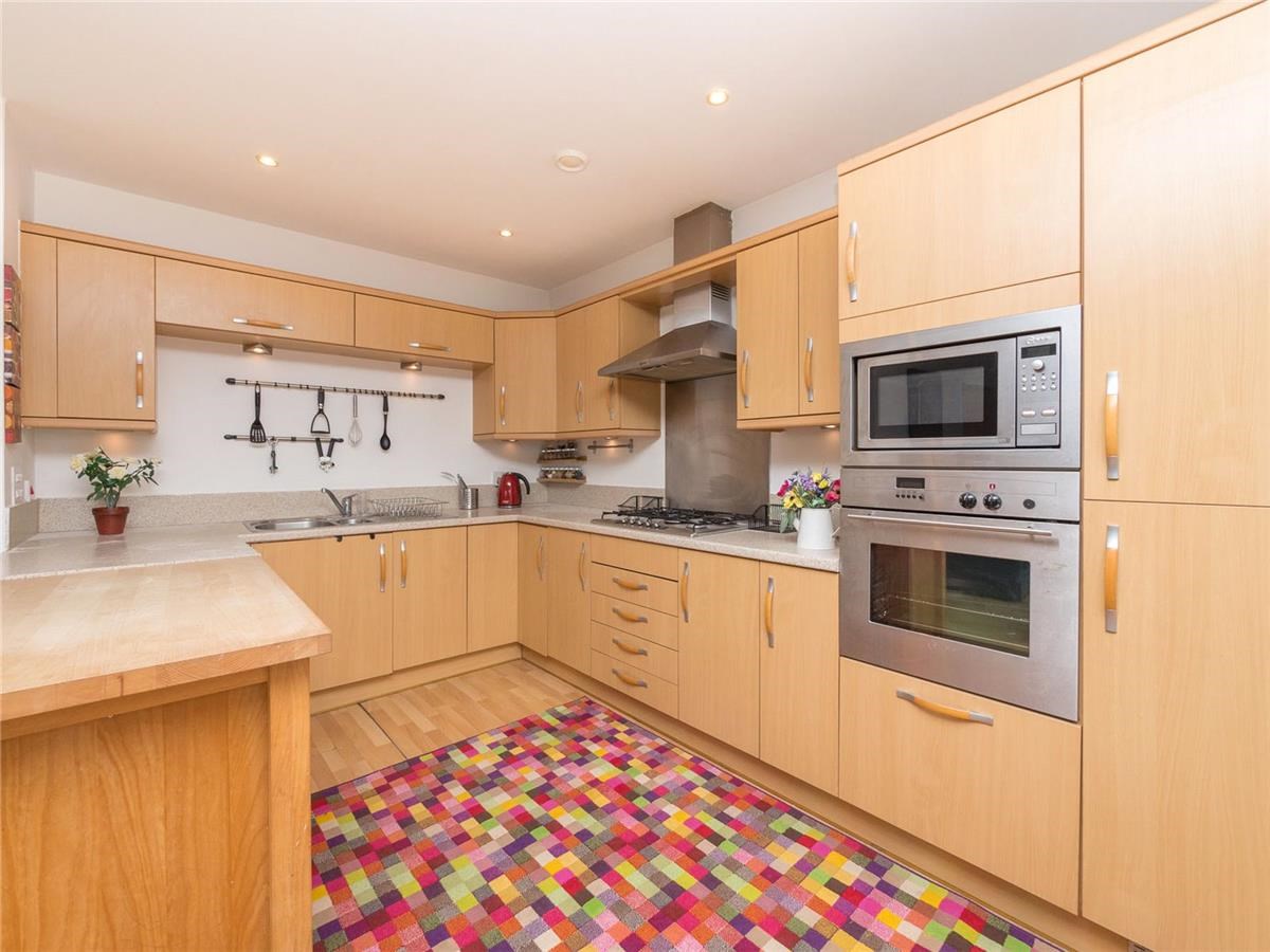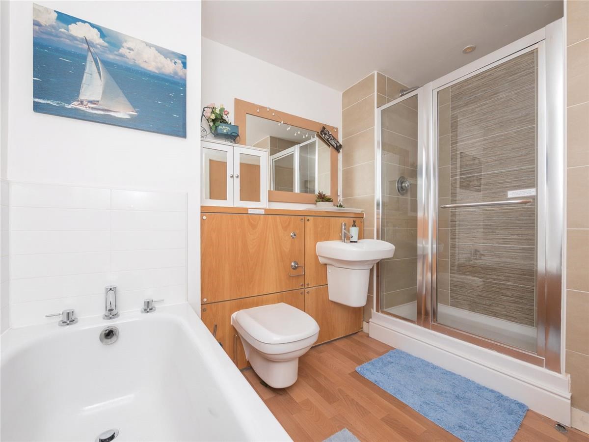 Three bedroom furnished flat located in Edinburgh. This stunning property comprises of a large open plan well-equipped kitchen/diner and living room with lovely views, two spacious double bedrooms with fitted wardrobes both with en-suites and one master bathroom. Further to the spacious living areas, the property benefits from gas central heating, study (third bedroom), a utility room, a balcony and an underground parking space.