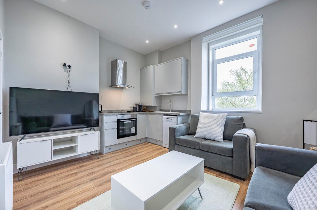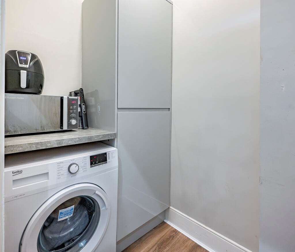 The property comprises a welcoming reception hallway with access off to the principal apartments. The open plan living space is at the back of the flat and offers a comfortable lounge area with fresh neutral décor and a modern kitchen. There is a utility off with further storage and space for white goods. The are two well proportioned bedrooms at the front of the property with the larger of these being a particularly appealing room. There is a separate cloakroom/WC and shower room off the hall.