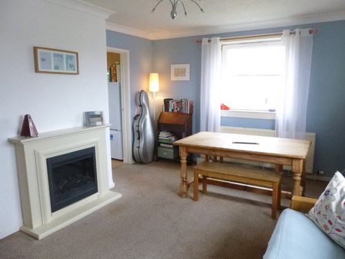 This is a third-floor apartment with entrance hall, two double bedrooms, one with wall-length wardrobes, a family bathroom with a white suite and electric shower over the bath and a good-sized lounge/dining room which has a feature gas fireplace and windows on two sides providing charming views over the city and the Blackford Hill. Most of the window sills have been upgraded to PVC and the well-laid-out kitchen has a fridge freezer, washing machine and ample floor and wall cupboards/working surfaces.