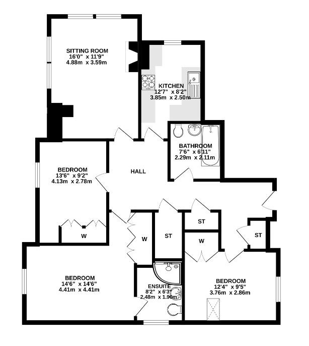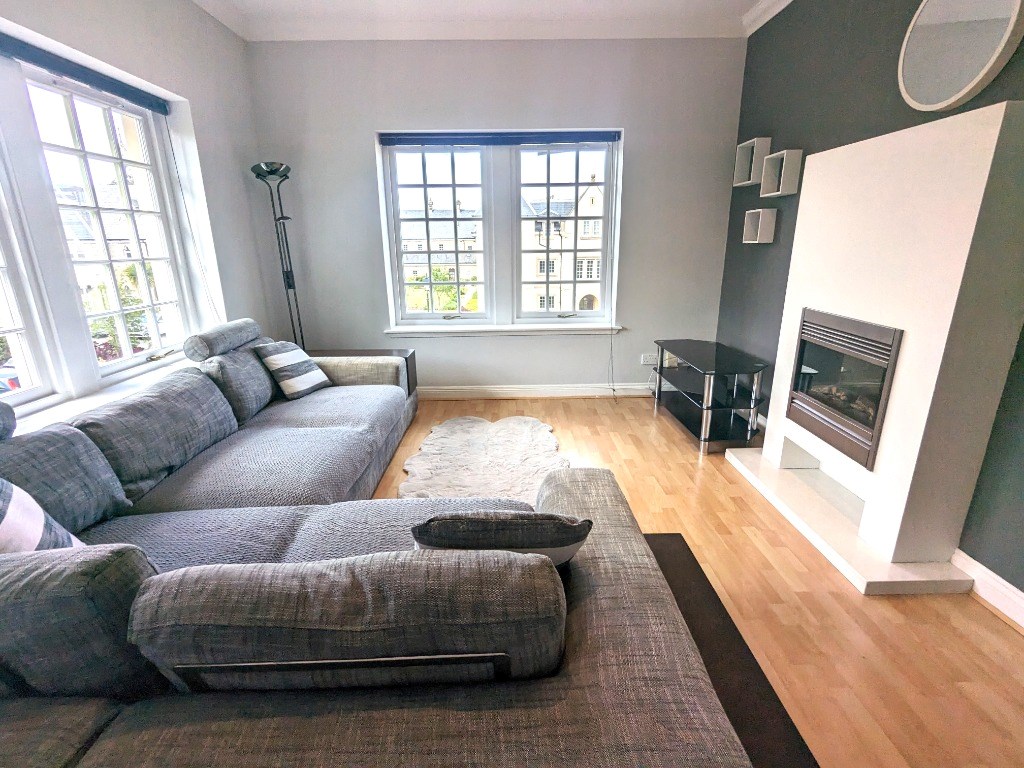 Superb, three bedroom flat in attractive modern development. Offered to the market fully furnished, the accommodation is comprised of a well maintained communal stair and a generous entrance hall with ample storage, which provides access to all adjoining rooms. A living room with large corner aspect window. A generous kitchen with integrated appliances and modern units. The principal bedroom enjoys an ensuite shower room and an integrated wardrobe. There are a further two double bedrooms, similarly with integrated storage space and space. Finally, the tiled family bathroom comprises a bathtub, a basin sink, and a WC. Gas central heating and double glazing ensure year-round comfort and efficiency. Externally, the development enjoys beautifully maintained grounds and private residents parking is available to the front.