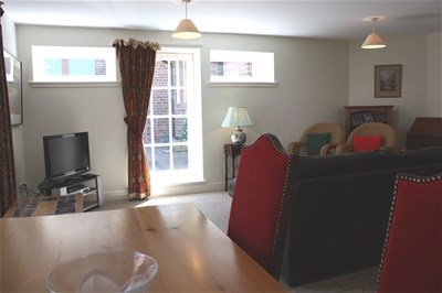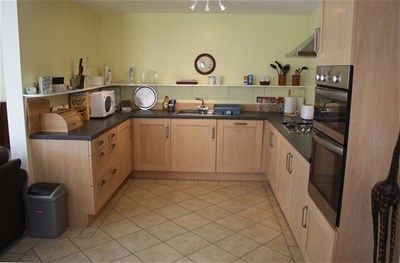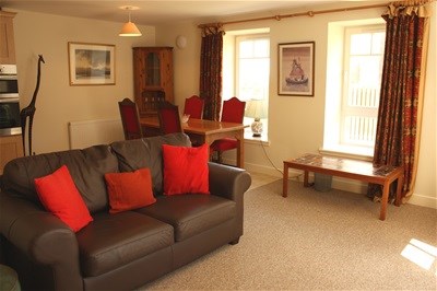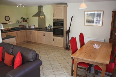 Open plan lounge, flooded with natural light with dining area, leading to well proportioned kitchen with main appliances.