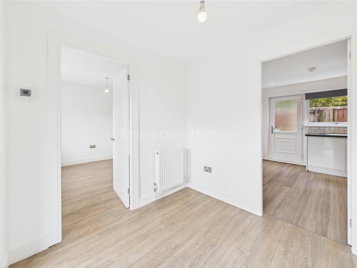 The accommodation comprises an entrance hall with storage cupboard, spacious lounge with dual aspect windows, the dining kitchen has a good selection of floor and wall mounted storage units, as well as plenty of work top surface area and a door to the rear garden.