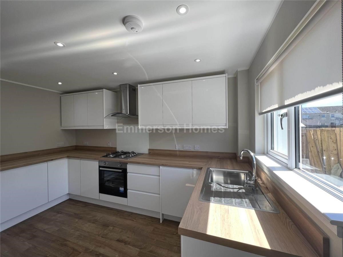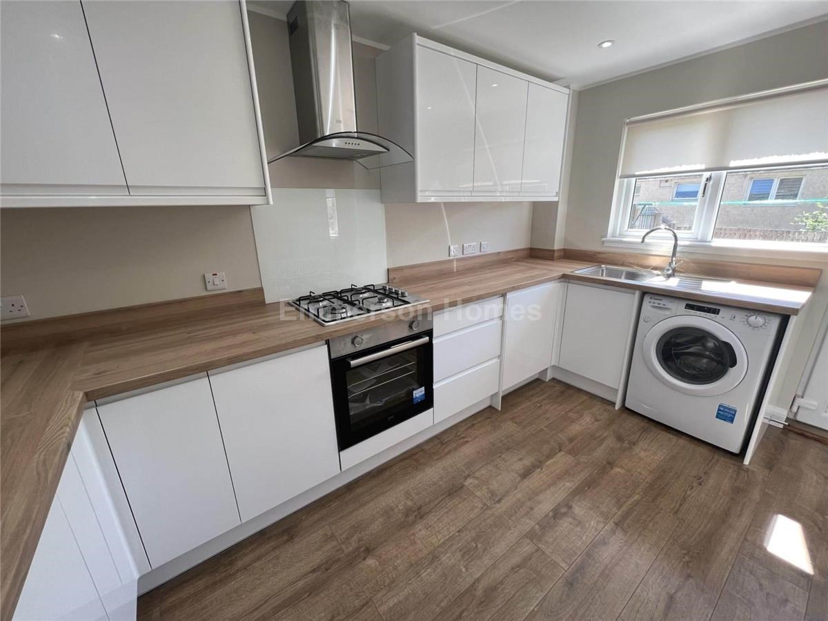 The accommodation comprises an entrance hall with large storage cupboard, spacious lounge with dual aspect windows allowing plenty of natural light to flood the room. The fully fitted kitchen comes with integrated appliances and freestanding washing machine, a good selection of floor and wall mounted storage units, as well as plenty of work top surface area and a door leading to the private rear gardens.