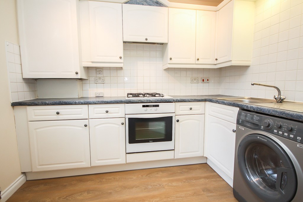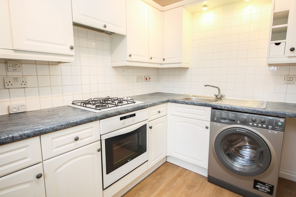 The fitted kitchen comes with all appliances (fridge/freezer, electrical oven, gas hob and washing machine).