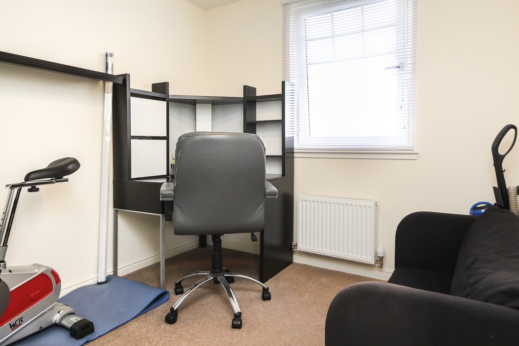 The second bedroom is also fitted with wardrobes. It is currently furnished as an office but could be cleared or turned into a bedroom.