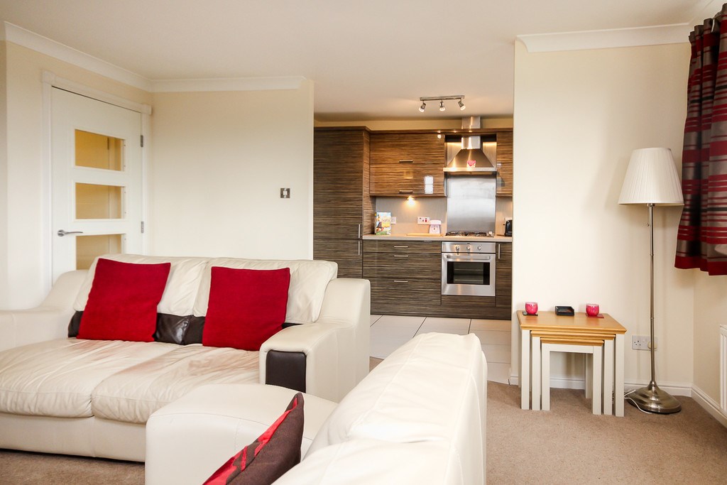 The lounge/kitchen area is open plan; the kitchen has integrated appliances including Oven/Cooker, Fridge/Freezer and Washing Machine.