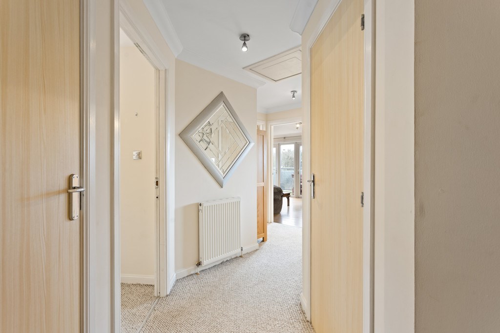 The property comprises a separate reception room with access to a balcony, providing an outdoor space for relaxation or dining. The kitchen includes a breakfast area, offering an informal space for everyday meals. There are two bathrooms, each with a heated towel rail; one forms part of the en-suite to the master bedroom. The master bedroom also benefits from built-in wardrobes, while the second bedroom is a double, again with built-in storage. The flat has an EPC rating of C and falls within Council Tax Band C.