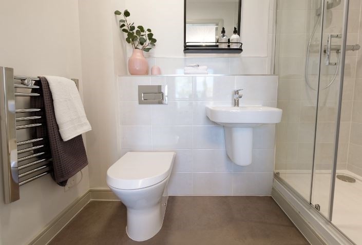 The main bedroom has en suite shower facilities and double wardrobes. The second bedroom, which has space for an optional fitted wardrobe, could serve as a home office.